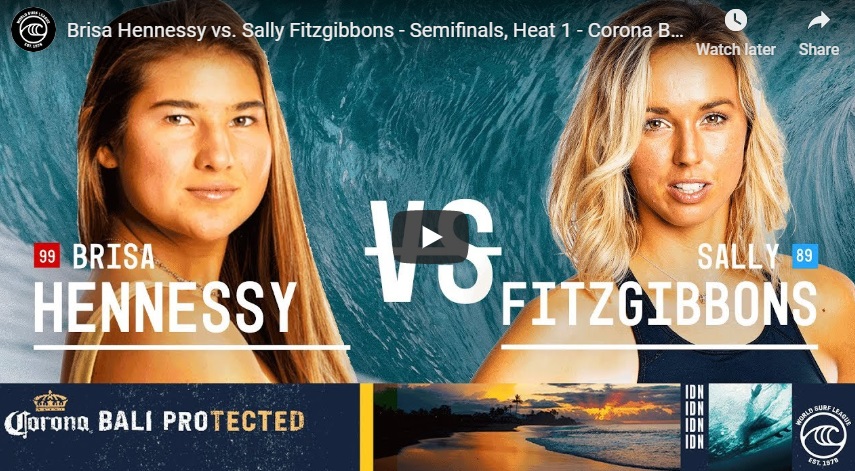 Surf By Girlifornia, 28 December, 2019 Brisa Hennessy takes on Sally Fitzgibbons in Heat 1 of the Semifinals at the 2019 Corona Bali Protected W. You may also like Surf Simmers Goes Back-to-Back, Remains Undefeated in Brazil Surf Caroline Marks Claims Back-to-Back Victories in El Salvador Surf Vahine Fierro Wins SHISEIDO Tahiti Pro 2024 Surf Shiseido Tahiti Pro 2024 Comments Subject Comment