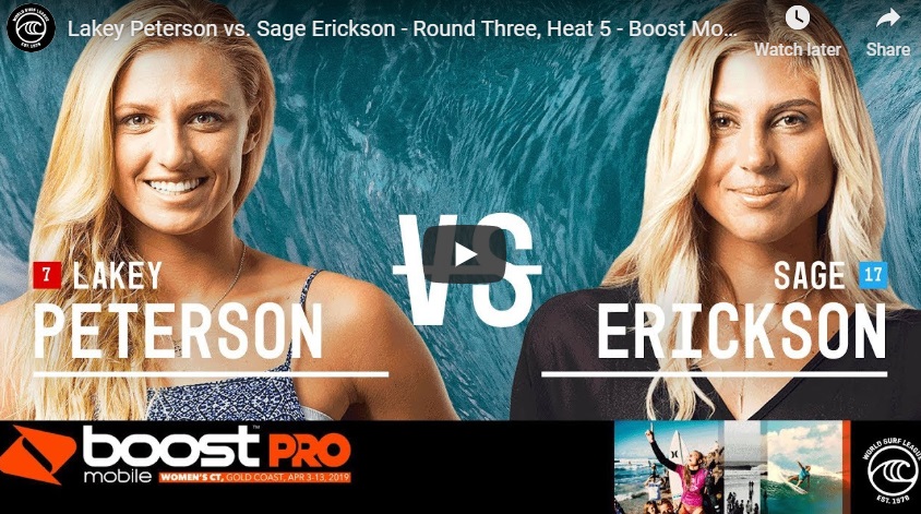 Surf By Girlifornia, 25 December, 2019 Video Url Lakey Peterson battles Sage Erickson in Round Three, Heat 5 at the 2019 Boost Mobile Pro Gold Coast, Australia