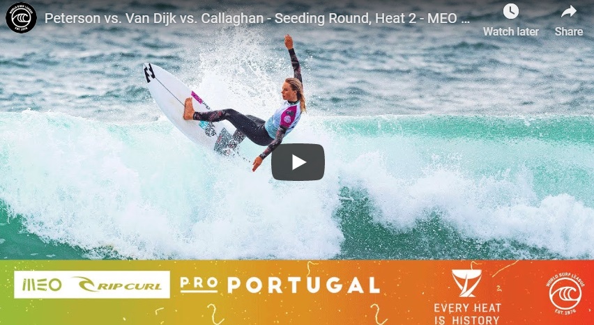 World No. 3 Sally Fitzgibbons (AUS) came out on top of the women’s opening Seeding Round heat but the fireworks really started in the second matchup, with an amazing three-way battle between Macy Callaghan (AUS), Lakey Peterson (USA) and Nikki Van Dijk (AUS). While Peterson is locked in the World Title race in second position on the rankings, for Callaghan and Van Dijk a result in Peniche could turn their season around with potential requalification through the CT.