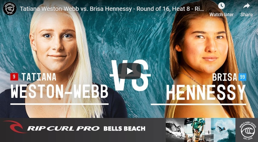 Surf By Girlifornia, 28 December, 2019 Video Url Tatiana Weston-Webb battles Brisa Hennessy in Round of 16, Heat 8 at the 2019 Rip Curl Pro Bells Beach