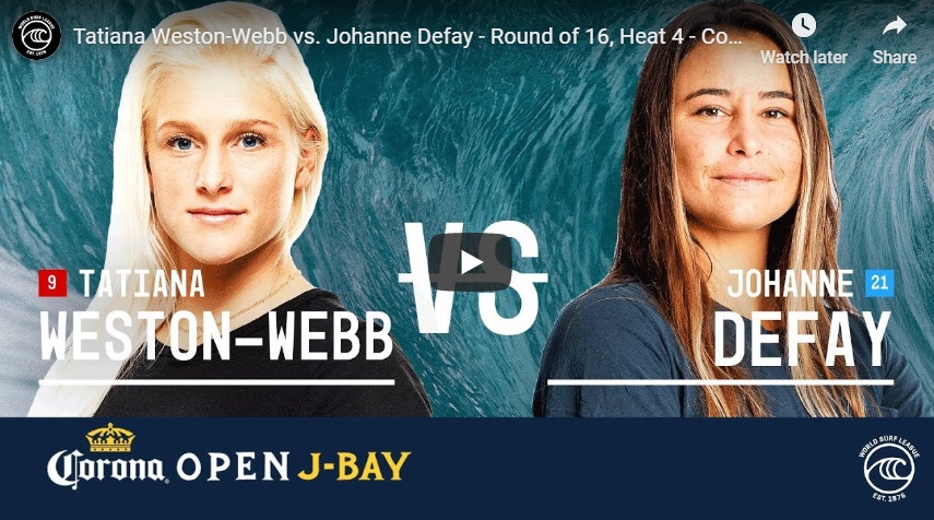 Surf By Girlifornia, 29 December, 2019 Video Url Tatiana Weston-Webb battles Johanne Defay in Round of 16, Heat 4 at the 2019 Corona Open J-Bay