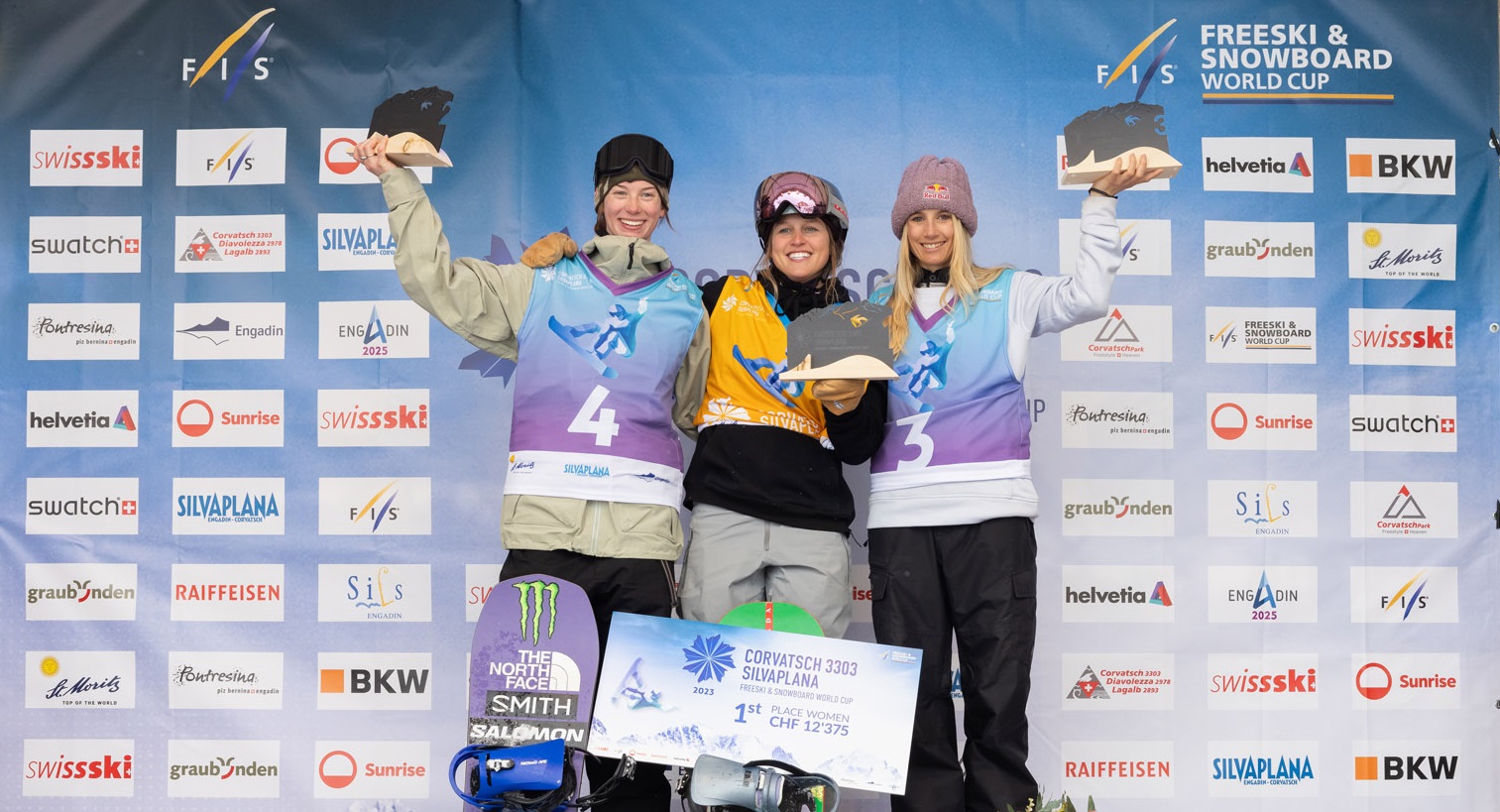 Rounding out the podium in third place was last season’s Silvaplana winner and top qualifier Anna Gasser of Austria, whose first run included a cab 900 tail grab, frontside 720 Weddle, and a backside double cork 1080 melon to give her a score of 82.25 and a perfect four podiums in four World Cup starts in 2022/23.