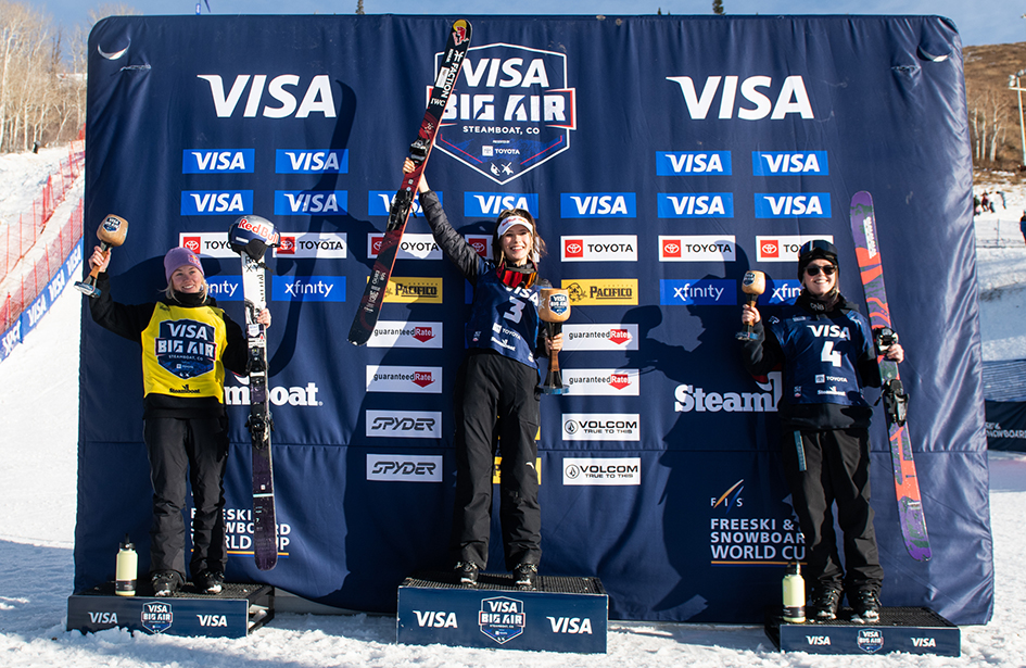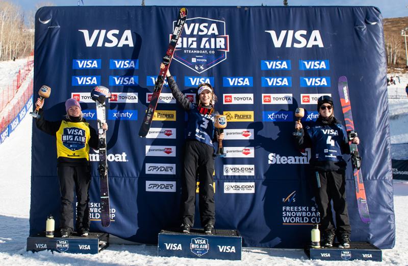 Just back of Tess Ledeux to round out the women’s podium at Steamboat was Johanna Killi of Norway, as the 24-year-old landed a switch right double 1080 Japan and a switch left 1080 tail grab for a score of 177.00. It was her second-straight podium after she also finished in third at the Stubai slopestyle World Cup two weeks ago.