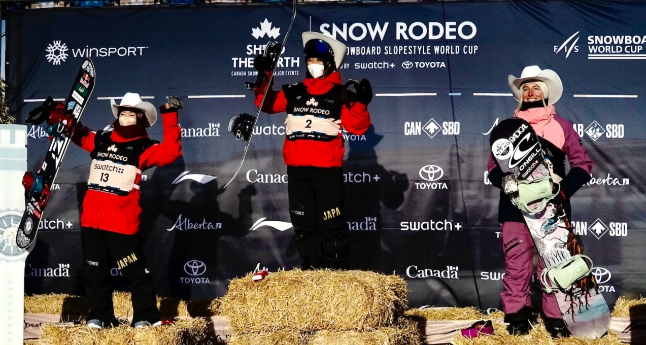 “Today was tough because I was nervous before the competition,” said Kokomo Murase before receiving her traditional Snow Rodeo Cowboy hat at the awards ceremony, “But I’m so happy to win my first slopestyle World Cup today.”