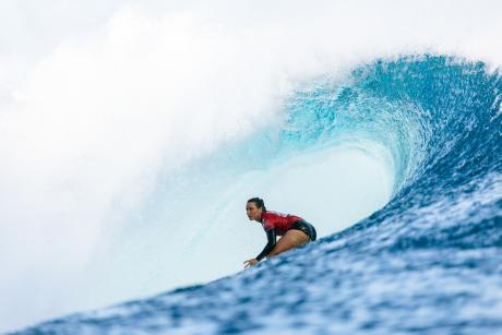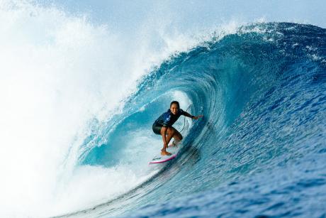“Honestly everything kind of went my way that heat,” Simmers said. “Me and Sawyer were kind of joking about it at the end, like everywhere I sat there was a wave, which is just crazy. Good job to Sawyer, she’s one of the greatest surfers and she got me last time in Tahiti and that was probably the most painful loss I’ve ever had, so I’m glad I got her, but we’ll have a dance-off later, so that’ll settle it.”