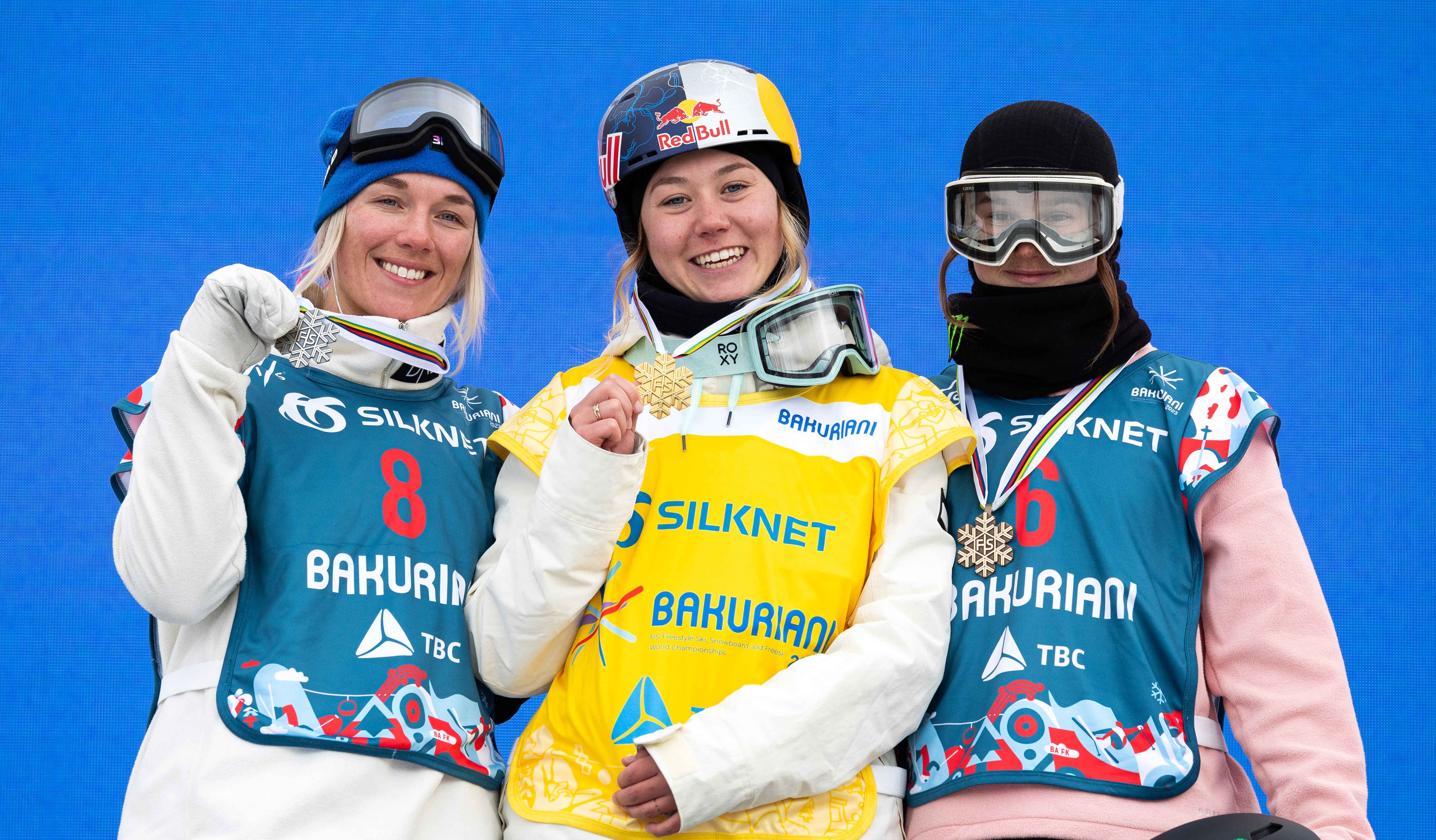 While Oldham wouldn’t attempt the triple here in Georgia, with a left double cork 1080 mute on run one and a switch left double cork 1080 Japan on run two, the 21-year-old did more than enough to earn her second medal of the Bakuriani 2023 World Championships and the third World Champs medal of her career.